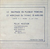 8  |  Plan ancien : LE NAUFRAGE EN PLUSIEURS TRONÇONS ET MORCEAUX DU «TITANIC» 15 AVRIL 1912. Réalisé par Felix Kestier, téléradie géologie, Doornstraat 2 - 8970 Poperinge Belgium Plan à l’échelle 1/25000e situant au fond : la chambre forte : trésor bijoux diamants 41,44,58 nord 50,02,07 ouest ainsi que : hélice, charbon, fer, argent, laiton, cuivre, cheminée, corps du capitaine Smith tout cela dans un périmetre de 8 km sur 5.250 km.Tirage de l’époque annoté : reproduction interdite. Document intéressant à l’époque où TITANIC n’était pas l’événement mode. Estimation :€ 200/300 |