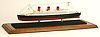 14  |  Maquette du paquebot très finement réalisée dans ses moindres détails et peinte aux couleurs de la Cunard. Précision remarquable au niveau des superstructures, manches à air, canots, treuils, bastingages, panneaux de cales, mâts et cheminées minutieusement haubannés. L’ensemble reposant sur un piétement laiton avec estrade en feutrine noire, est présenté sous une vitrine avec socle en bois mouluré et vernis, 70 x 24 cm. Estimation :€ 600/700 |