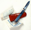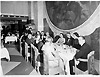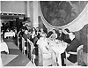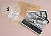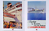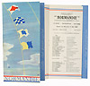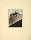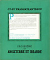 – 1 luxueuse plaquette souvenir de voyage pour la croisière «TO NORWEGIAN fjords and northern capitals Aout 1953». Couverture à l’emblème de la Cie avec retenu par un Cordon l’Au Revoir, le Staff, la liste des passagers, la carte maritime de la croisière et divers autographes.