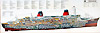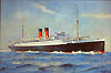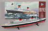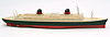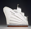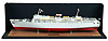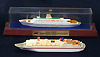 12  |  SUPERBE MAQUETTE du paquebot à l’échelle 1/450e et peinte aux couleurs de la CUNARD. Remarquable réalisation d’une très grande finesse dans les moindres détails des emménagements et accastillage des ponts qui sont extrêmement détaillés. Présentée sous vitrine, reposant sur un piétement laiton avec estrade en feutrine verte et socle en bois mouluré. Parfait état et peu courante. L.1.00 m. Estimation :€ 750/850 |