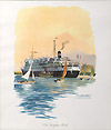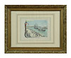 683  |  RARE GRAVURE montrant le FRANCE, premier du nom, arrivant dans le port du Havre accompagné de son remorqueur à roues à aube. La scène est très animée. La gravure est réhaussée à l’aquarelle. Estimation :€ 180/220 |