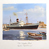 22  |  BELLE IMPRESSION en couleurs sur velin par Roger CHAPELET pour les agences de la Cie. Composition montrant en 1953 le paquebot par tribord en rade de Palma. Barques au mouillage au 1er plan et navires manœuvrant dans la rade. A l’arrière plan, la célèbre cathédrale fortifiée. 59 x 47 cm. Encadrée sous verre. Estimation :€ 300/400 |