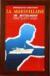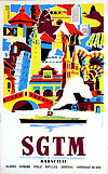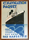 24  |  AFFICHE D’ÉPOQUE par GUY georges, illustrateur. Inscrit «S.G.T.M. Marseille, Algérie, Antilles, Italie, Espagne, Sénégal, Amérique du Sud», le paquebot PROVENCE est montré par tribord avec important emblème au monogramme de la Cie. Vers 1951-1952. 68 x 105 cm. Encadrée sous verre. Estimation :€ 300/350 |