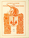 28  |  RARE OUVRAGE 1852-1927, MESSAGERIES MARITIMES 75ème ANNIVERSAIRE. Flocage à l’emblème de la Cie en couverture : la licorne couronnée en mur de rempart sur une ancre de Marine. A l’intérieur : 3 bois gravé en bistre de MATHURIN MEHEUT (sur le thème de l’emblème de la Cie). Photos noir et blanc de MM. Georges PHILLIPAR, André LEBON, Félix ROUSSEL et reproduction en couleurs du tableau de BOILLY montrant l’arrivée d’une diligence dans la cour des Messageries Maritimes. L’ouvrage de toute l’histoire de la Cie sur 75 ans. Rare exemplaire numéroté 201/1000. Introuvable par rapport à celui du centenaire. Bel état. Estimation :€ 250/300 |