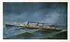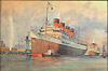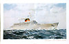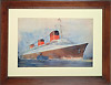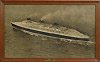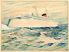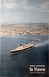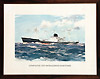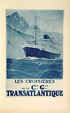 665  | Superbe représentation du paquebot en mer pour les agences de la Cie, d’après l’aquarelle originale de Jacobsen. Le navire est montré par le travers bâbord sur une mer houleuse. Tirage en couleurs par l’ancienne imprimerie de la Cie Gle Transatlantique dans un encadrement en bois ciré. Estimation :€ 280/350 |