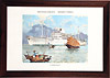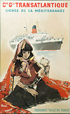 21  |  BELLE IMPRESSION en couleurs par Roger CHAPELET pour les agences de la Cie montrant le paquebot par arrière bâbord en rade de Palma. Affiche très animée avec passagers en opération de transbordement sur une vedette et nombreux voiliers au pourtour. Couleurs très fraîches. 50 x 44 cm. Encadrée sous verre. Estimation :€ 300/400 |