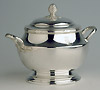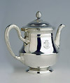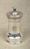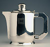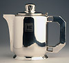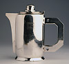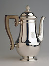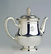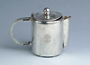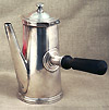 676  |  GRANDE ET TRÈS RARE VERSEUSE, orfèvrerie Ercuis. Modèle créé pour les paquebots de la série les «Provinces» (BRETAGNE - CHAMPAGNE - BOURGOGNE - GASCOGNE - NORMANDIE). Corps tronconique reposant sur piédouche mouluré.Couvercle à charnière avec prise bouton. Prise latérale avec manche isolant en bois noir. Bec verseur pris sur le corps. Ht. 25 cm. Monogramme et argenture refait par la Cie après-guerre. Très belle pièce 19ème destinée aux premiers passagers de la riche clientèle de 1ère classe de l’Atlantique Nord. Estimation :€ 700/800 |