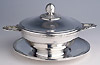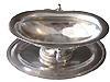 657  |  Paire de plateaux de carafe d’orfèvrerie Christofle, destinés aux 1ères classes et de style Louis XV. Bord avec moulures chantournées, gravés dans le fond en belles lettres rondes «Compagnie Générale Transatlantique - French Line». Parfait état argenture neuve. Estimation :€ 200/300 |