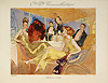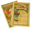 651  |  Ensemble de 2 très beaux menus pour une traversée en août 1929, illustrés en couleurs par Georges BARBIER de scènes de la vie à bord des paquebots de la Cie à différentes époques, avec des passagers sur les ponts :