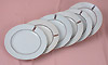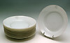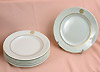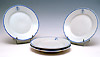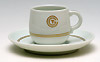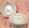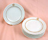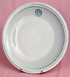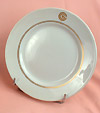 647  |  PAIRE DE RARES assiettes A huItreS en porcelaine de Limoges blanche par C. FIELD HAVILAND avec le thème de la treille en ocre jaune, sur le marli. Empreinte moulée dans l’assiette pour 6 huîtres. Rare monogramme de la Cie propre à ce paquebot, imprimé en transparence au centre. A l’état neuf. Estimation :€ 150/180 |