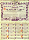 700  |  Joli lot de 4 actions de Cies Maritimes et de Chantiers Navals. Cie Gle de constructions navales 1918, Cie des Vapeurs Français 1919 (superbe gravure d’un 3 cheminées dans cordage). Société Nationale de Sauvetage et Remorquage France (1919). Estimation :€ 50/600 |