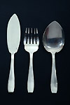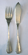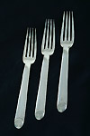 667  |  ENSEMBLE DE 3 FOURCHETTES A ENTREMET et 3 COUTEAUX A ENTREMET, orfèvrerie Christofle, pour les 1ères classes. Monogramme et argenture refait par la Transat. Bel état. Estimation :Les 6 pièces : € 280/350 |