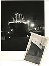 3  |  Remarquable photo artistique réalisée par le photographe Raymond AUGUSTIN en 1956 prise du paquebot FLANDRE qui arrivait au Havre. Le paquebot UNITED STATES est vu par 3/4 arrière bâbord, de nuit, illuminé. La photo est avec un effet artistique provoqué par une pose lente. Cachet du studio au dos. 20 x 30 cm. Estimation :€ 70/90 |