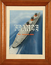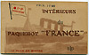 650  |  PRESTIGIEUX OUVRAGE DE LA CIE pour montrer la somptuosité des emménagements du «Versailles flottant» qui plongeaient les passagers dans des décors de palais royaux. Emboitage en chagrin rouge gravé aux fers en or : «SS FRANCE» sous une ancre de marine et bord décoré de feuilles d’or. A l’intérieur (manque préface de L. Vaillat), nombreuses photos sur bristol (CERTAINES EN COULEURS très rare pour l’époque), montrant la décoration, la tâpisserie, tableaux, ferronneries, orfèvrerie, sculptures. Documentation exceptionnelle. Bel état. Couverture en photo p.37 ainsi que des intérieurs p.40 à 50 de l’ouvrage «Art décoratifs à bord des paquebots français». Estimation :€ 280/350 |
