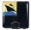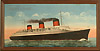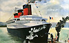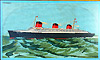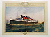 11  |  PRÉSENTOIR avec enchassé sous verre, la face, TOMORROW’S SUPERLINER TO DAY et le QUEEN ELIZABETH II par le travers. Au verso, l’emblème de la Cie, lion couronné tenant le monde dans ses pattes avant. Estimation :€ 70/80 |