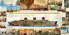 679  |  SUPERBE PLANCHE D’ÉPOQUE gravée par MORIEU montrant : une vue du paquebot aux Chantiers Charles Vickens à Barrow ; 2 vues des intérieurs du grand salon, salle à manger par H. Toussaint ; une vue du navire en mer par tribord par P. MEAULLE et une rare et grande coupe longitudinale du navire permettant de voir tous les détails du paquebot avec personnages en situation et indications diverses, 60 x 40, encadrée sous verre. Très rare document d’époque. Estimation :€ 350/450 |