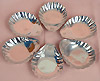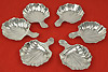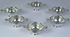 658  |  TRÈS RARE ENSEMBLE DE 6 RAVIERS, orfèvrerie Christofle pour les 1ères classes. Prenant la forme de coquille St Jacques nervurées se prolongeant pour former la prise appui-pouce. Bien gravés à l’intérieur du monogramme arrondi créé spécialement pour les 1ères classes de LA PROVENCE 1906. Très bel état. Estimation :Les 6 : € 800/1000 |