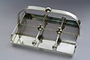 1  |  REMARQUABLE MAQUETTE D’AGENCE DU PAQUEBOT «M.S. BATORY», échelle 1/175e. Maquette montrant le paquebot dans sa version après-guerre 1951-1957. Montré navigant, construction bois et métal de haute qualité, coque pleine sculptée et peinte, élégante superposition des ponts avec bastingage laiton. Ponts très détaillés, mature bien gréée, canots à poste, appareils de navigation, treuils...., fines cheminées à l’emblème de la Cie. Coque et superstructure peintes aux couleurs de la version 1951. Repose sur son socle d’origine (L.96 cm) avec sa plaque de présentation gravée de ses caractéristiques. Maquette d’époque d’un paquebot qui eut une longue vie : 1936-1971 et fut prisé de la clientèle. Estimation :€ 1800/2500 |