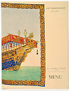 648  |  MENU BILINGUE peu courant avec illustration de Maurice LE LOIR en couverture montrant une scène galante sur le pont d’un vieux vaisseau. Maquet, graveur. Estimation :€ 30/50 |