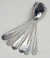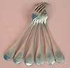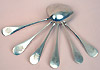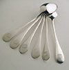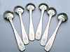 659  |  Ensemble de 6 cuillères de table, L. 21.5 cm, orfèvrerie du modèle uniplat pour les secondes classes, bien gravées sur le manche du monogramme arrondi créé spécialement pour ce paquebot. Très bel état. Estimation :€ 280/350 |