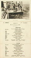 – 1907 «On board French Line Steamers - Voyageurs d’hier» (illustration différente), menu du 8 août 1929. Estimation :Les 2 : € 150/200 |