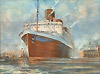 23  |  BELLE IMPRESSION EN COULEURS SUR VELIN signée de Jacques SAUGERON (décorateur et ancien directeur de la Cie), datée 4/48. Composition montrant le paquebot par avant 3/4 tribord sur une mer houleuse et doublant un batiment immatriculé à Marseille. Les passagers sont aux bastingages. Couleurs très fraîches. Dans son encadrement d’origine. 59 x 47 cm. Estimation :€ 300/400 |
