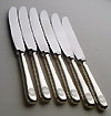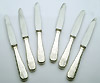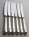 672  |  Ensemble de 6 COUTEAUX A entremet, orfèvrerie Christofle pour les 1ères classes. Monogramme et argenture refaits par la Transat. Bel état. Estimation :€ 280/380 |