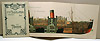 697  |  DÉCOR POUR VITRINE d’une agence de la Cie Maritime avec important panneau découpé à la forme d’un paquebot vu par l’avant tribord accompagné de remorqueur. L.1.20 m, Ht. 0.85 m. Estimation :€ 120/180 |