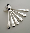 668  |  ENSEMBLE DE 6 CUILLÈRES DE TABLE, orfèvrerie Christofle, modèle uniplat, en photo p.26 du livre «Arts décoratifs à bord des paquebots français». Monogramme et argenture refaits par la Cie. Très bel état. Estimation :€ 300/400 |