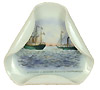 678  |  Précieux cendrier en porcelaine blanche dont les bords s’enroulent vers l’intérieur avec magnifique décor du paquebot LA NORMANDIE, vue par 3/4 arrière bâbord à sec de voiles s’éloignant vers la haute mer accompagné de son remorqueur avec roues à aube LE NEPTUNE. Inscrit : «Le steamer LA NORMANDIE de la Cie Gle Transatlantique». Rare et en parfait état. Estimation :€ 160/200 |