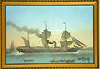 675  |  BELLE HUILE SUR TOILE par Édouard ADAM, 1847-1929, peintre officiel de la Marine en 1885. Représentation du paquebot par le travers bâbord sur une mer formée, quittant LE HAVRE à toute vapeur, ses 2 cheminées fumantes et laissant à son arrière les côtes de Sainte Adresse. Œuvre remarquable montrant le navire en 1908 (datée en bas à droite) après sa refonte de 1895. Tout l’accastillage des ponts, le gréement des mâts etc... est finement détaillé. Dans son encadrement, sculpté, doré, d’origine. Signée en bas à droite. Estimation :€ 7000/8000 |