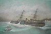 666  |  BELLE REPRÉSENTATION du paquebot en mer pour les agences de la Cie d’après l’œuvre originale d’Antonio JACOBSEN montrant le navire par bâbord sur une mer houleuse avec un ciel d’orage. Tirage en couleurs par l’ancienne imprimerie de la Cie Gle Transatlantique. Sous verre dans un encadrement en bois vernis. Estimation :€ 280/350 |