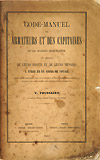 685  |  TRÈS RARE OUVRAGE DE RÉFÉRENCE : «CODE DES ARMATEURS & DES CAPITAINES DE LA MARINE MARCHANDE». Fort ouvrage relié de 794 pages. Par V. TOUSSAINT. Détaillant leurs droits, leurs devoirs à terre et en cours de voyage dans leurs rapports avec le commerce et les administrations de la Marine, de la Douane et des Contributions Indirectes. Il est impossible de détailler l’énorme source documentaire que contient cet ouvrage édité en 1863 par Cochard et Robiquet. In 8 demi chagrin à coins (1 planche de fanions et une de manœuvres en couleurs). Estimation :€ 300/400 |